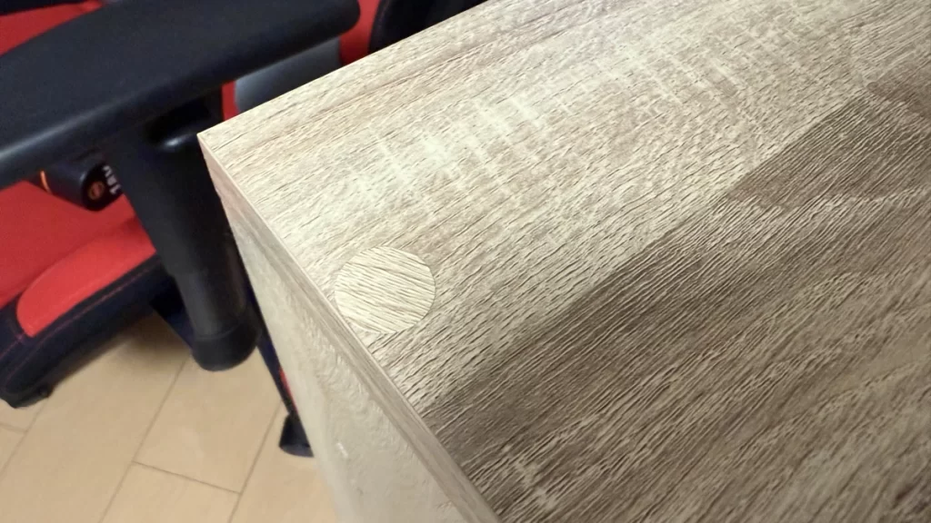 最大の難所は背板。一枚板ではなく細板を複数固定する方式で、片手で板を支えながら水平を保ち、もう片手でネジを入れる――ここは素直に二人体制が楽。私は仮止め→本締めの順で、背板は対角に軽く留めて直角を出してから本締めにすると歪みが出ずうまくいきました。天板を乗せて固定したら、仕上げにネジ頭を目隠しシールでカバー。